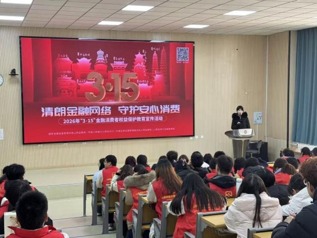 修德202阶教进行,现场座无虚席,先是由太原市公安局反诈十佳讲师结合近期高发诈骗案例,用真实、鲜活的素材为同学们深入剖析校园电信诈骗、网络刷单诈骗、虚假征信诈骗等常见套路,通过案例解析、现场问答等互动形式,细致讲解防范要点与应对方法,切实提升学生的反诈识别能力,引导学生增强警惕性,掌握自我保护技能。随后,民生银行金牌消保讲师以“从不被骗”到“会理财”为切入点,聚焦青年消费特点与金融需求,引导同学们树立理性消费观念、正确使用金融产品、维护个人征信安全,帮助青年群体树立健康向上的消费观与理财观,做到防诈有术、理财有方。同学们在轻松热烈的氛围中进一步夯实了金融基础知识储备,提升了风险识别与应对能力。