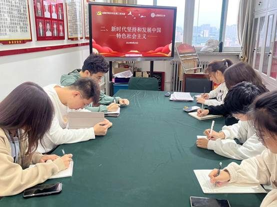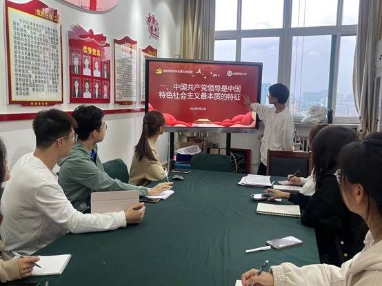 本科生第三党支部在9月24日进行了第一章和第二章的学习,本讲的主要内容是“中国共产党领导是中国特色社会主义最本质的特征”和“新时代坚持和发展中国特色社会主义”,由本科生第三党支部预备党员洪昊带领大家学习,本科生第三党支部崔梓轩主持并总结发言。