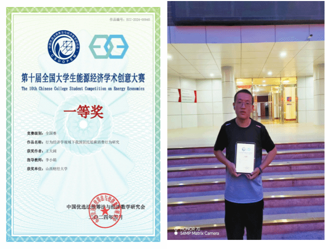 本科生王天阔凭借参赛作品《行为经济学视域下我国居民低碳消费行为研究》脱颖而出,荣获本科组全国一等奖!