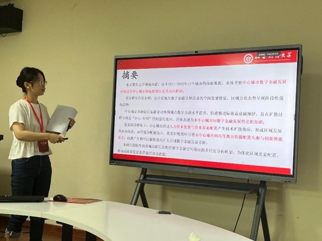 本次研讨会紧扣党的二十届三中全会精神,围绕 “金融开放与金融安全”“自贸港金融创新”“技术变革与金融市场发展”等核心议题展开深度研讨。中国银行研究院院长陈卫东、天津财经大学副校长马亚明等学界权威分别就国际环境变局、中美经济互动等主题发表主旨演讲,为海南自贸港建设及全国高水平开放提供智力支撑。在下午的论文宣讲环节,24 位入围作者围绕四大主题汇报最新研究成果,王亚梅等老师的论文《中心城市数字金融发展的空间外部效应 —— 以京津冀城市群为例》成功入选并进行专题汇报。