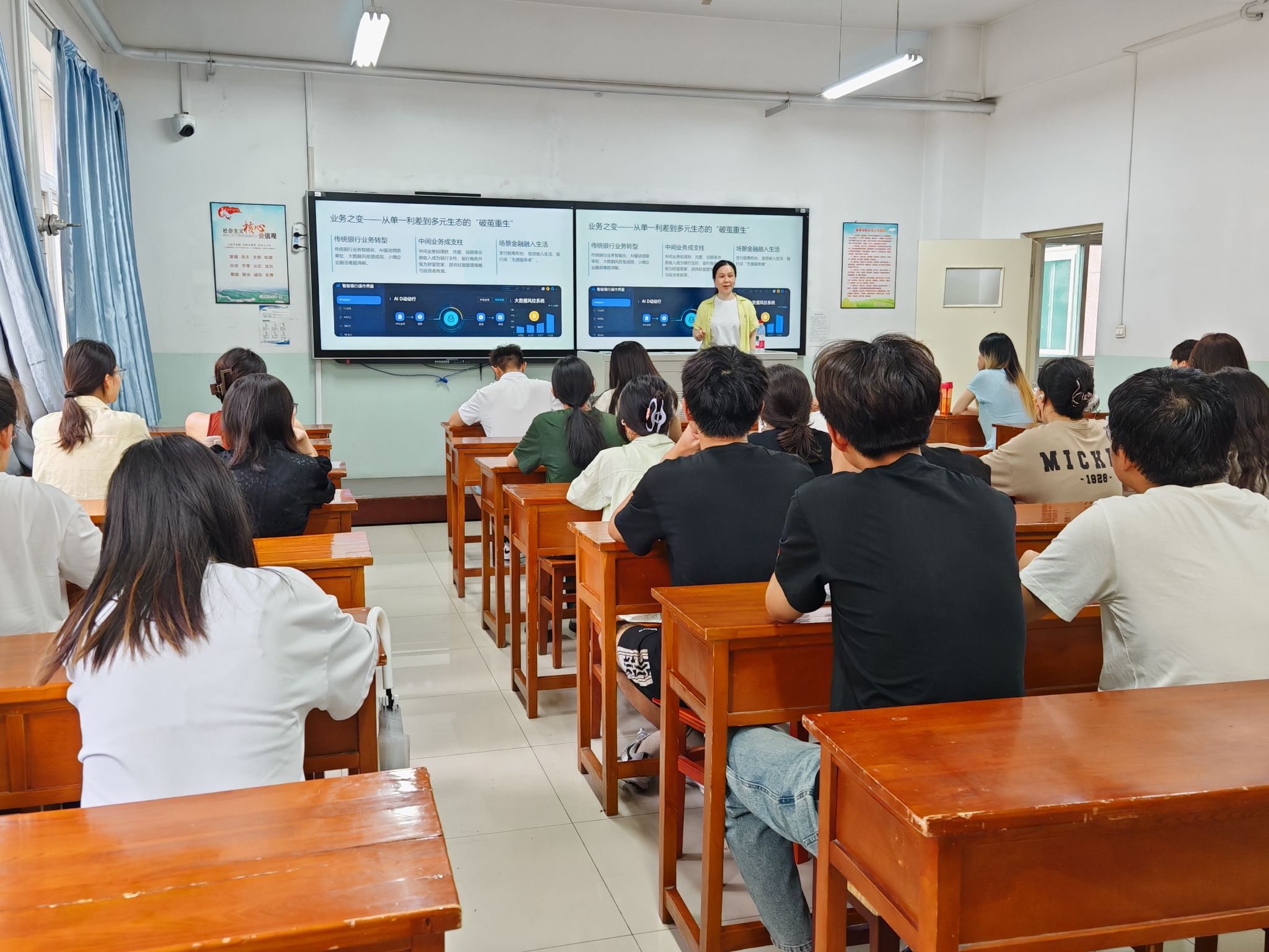 2025年6月30日下午,“请进来”的中国农业银行山西省分行个人金融部杨经理为学生进行了《银行不“铁”了,你的未来怎么“金”?》的讲座,在一个半小时的授课过程中,杨经理以自己从业20多年的切身体会和对银行经营活动尤其是个人金融业务的深刻理解,语重心长、循循善诱地向学生介绍了银行目前面临的经营环境、学生未来职业生涯规划应有的心态和技能,学生们收益匪浅,进一步坚定了学好专业知识、提升个人综合能力的决心。