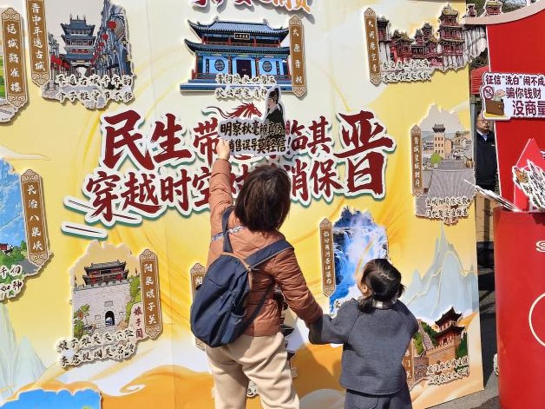 同时,为了让金融知识真正接地气、入脑入心,宣教活动在校园中精心打造了四大功能各异的沉浸式互动宣教区域。四个展区分别围绕“投沙包知风险,谨防征信修复诈骗”、“投镖知权益,警惕诈骗保护财产安全”、“权衡在前,决断在后,远离非法校园贷”、“民生带您身临其晋,穿越时空对话消保”等核心风险主题,结合大学生高频接触的金融场景,将抽象的金融法律条文、专业的风险防范知识转化为直观易懂的图文解析与互动问答设计,吸引大批学生积极参与、驻足体验。通过沉浸式、趣味化的体验方式,有效激发了学生学习金融知识的主动性,引导大家树立科学、理性的金融消费观念,全面提升金融网络风险防范能力。