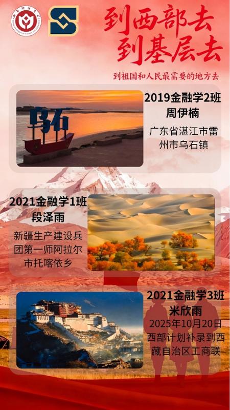 为深入贯彻落实大学生志愿服务西部计划相关部署,引导金融学子以志愿服务锚定青春航向,将青春理想融入国家发展大局,让志愿芳华绽放在祖国最需要的西部热土,问鼎娱乐
