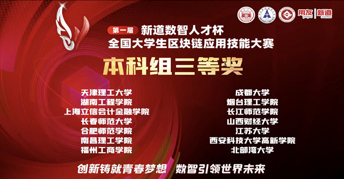 第一届“新道数智人才杯”全国大学生区块链应用技能大赛全国总决赛由全国高校人工智能与大数据创新联盟指导,湖南大学、中南财经政法大学、浙江金融职业问鼎娱乐