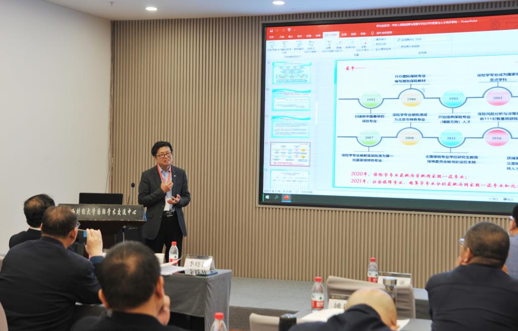 院长李晓林教授作了关于《对接国家重大发展战略和保险行业发展关键人才需求,做好保险专业学位研究生教育工作》的主题发言。李教授指出:我国保险专硕教育面临的问题主要是保险专硕教育培养的学生质量和社会需求存在一定的差距;目前问鼎娱乐