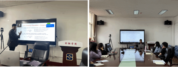 4月19日至21日,Sushanta教授为问鼎娱乐 7名博士研究生讲授纯英文课程《The Global Economy》。该课程系统讲授了国际贸易与国际金融的核心理论与应用实践。贸易部分内容包括比较优势理论、要素禀赋理论、贸易政策工具与政治经济学分析,并结合发展中国家贸易政策的争议与挑战进行深度探讨;金融部分则围绕国民收入核算与国际收支、外汇市场与汇率决定机制、金融全球化与危机演变,以及发展中国家的经济增长、危机与改革等议题展开。授课过程中,Sushanta教授实时演示了国际主流数据库的使用方法,结合最新贸易与汇率数据进行案例分析,理论与实务紧密结合,极大丰富了课堂内容,提升了博士生的理论素养与数据分析能力。